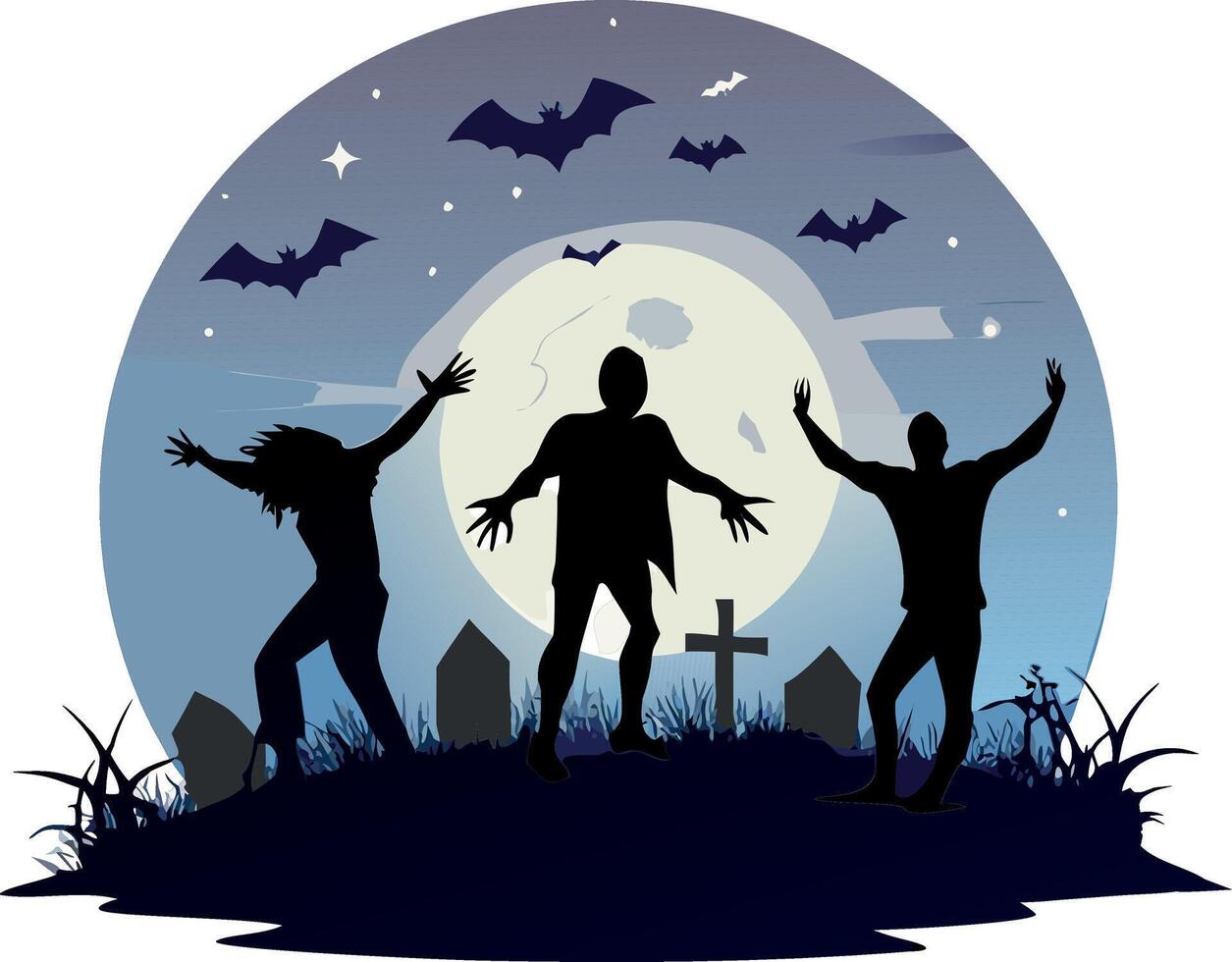 Halloween silhouettes of zombies and bats vector