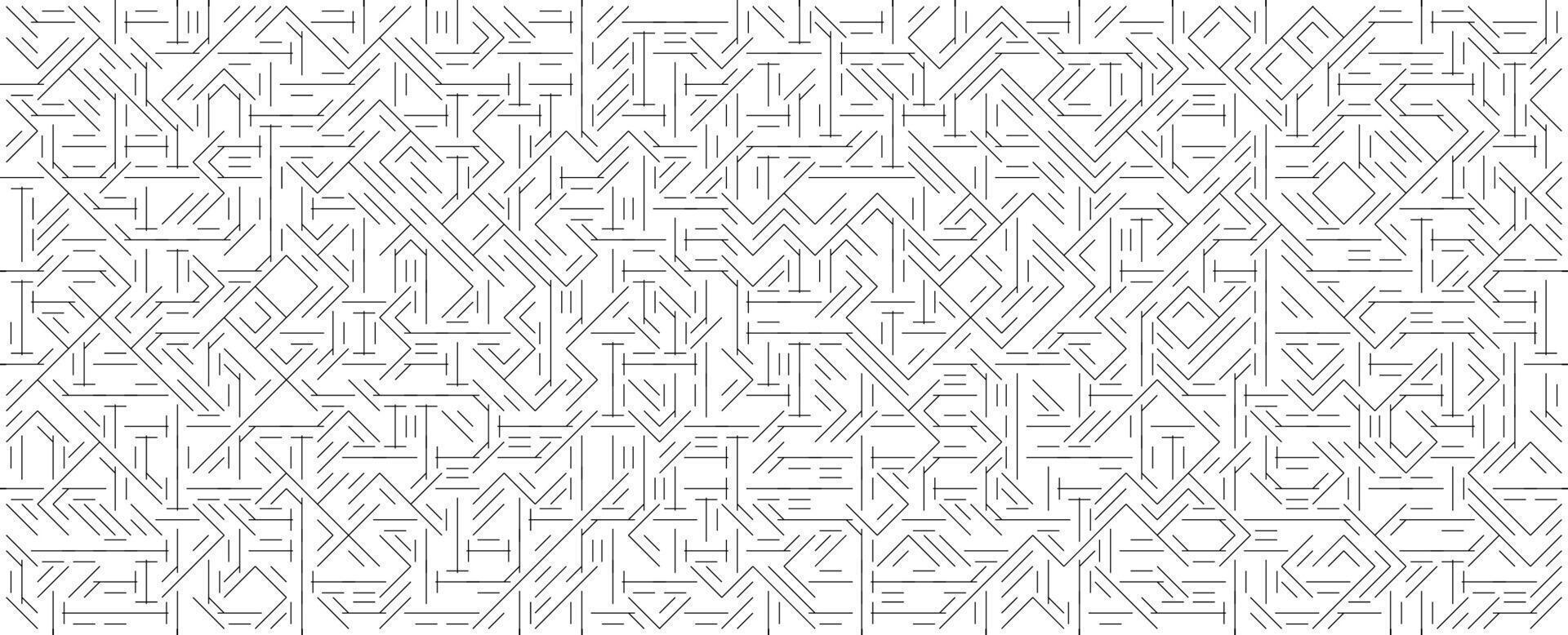 Abstract Seamless Line Pattern Background, Minimal Geometric Maze Texture With Thin Strokes On White. Clean Monochrome Tech Design, Editable Repeat. Illustration. Pro Vector