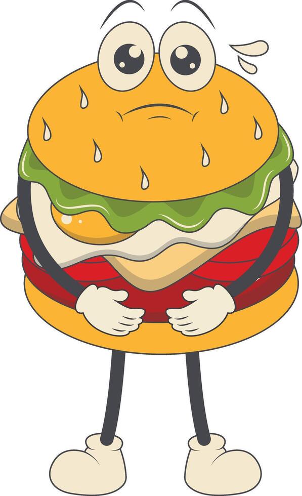 Burger Groovy Retro Character Isolated on White Background. Pro Vector