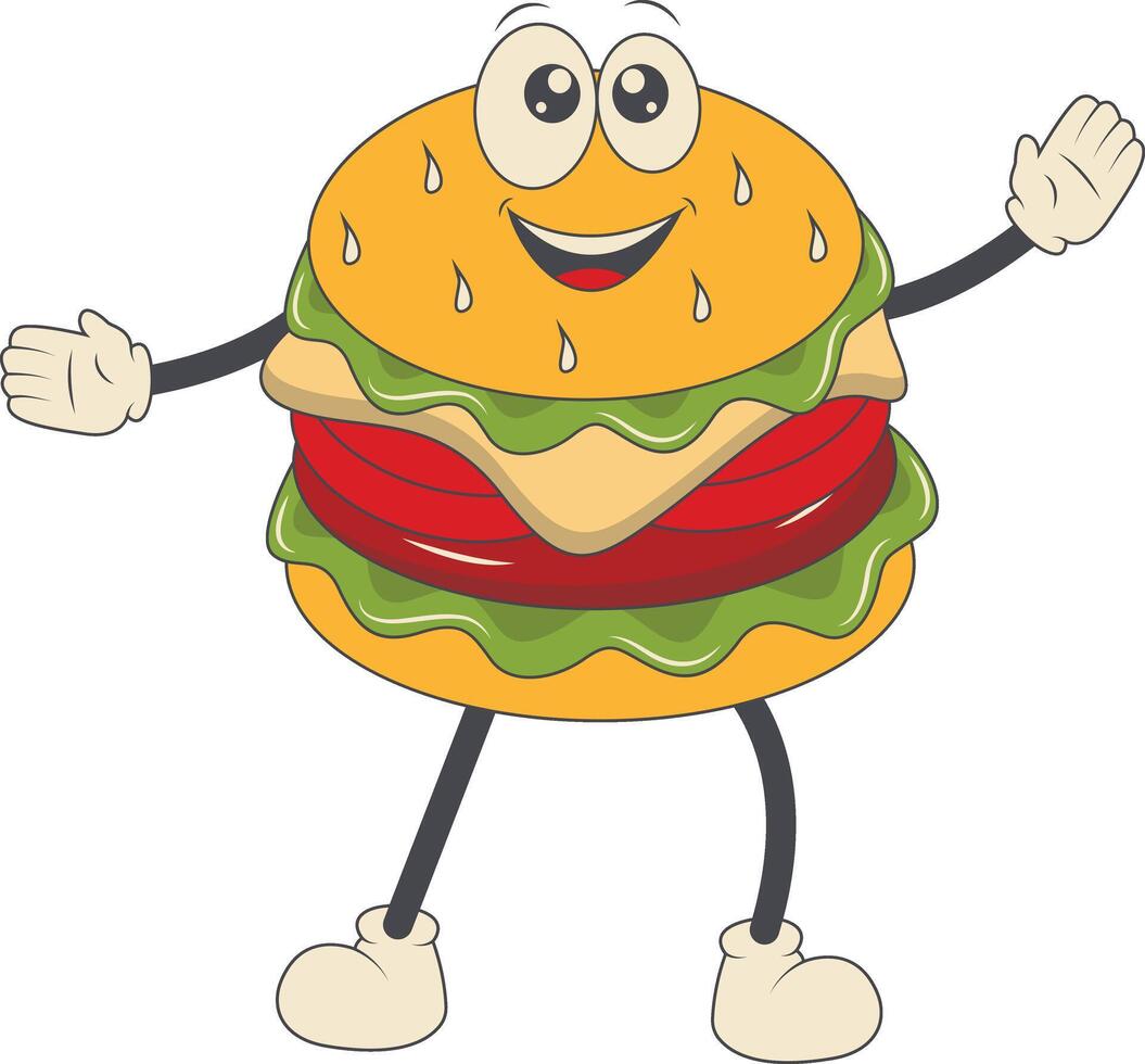 Burger Groovy Retro Character. Isolated on White Background Pro Vector