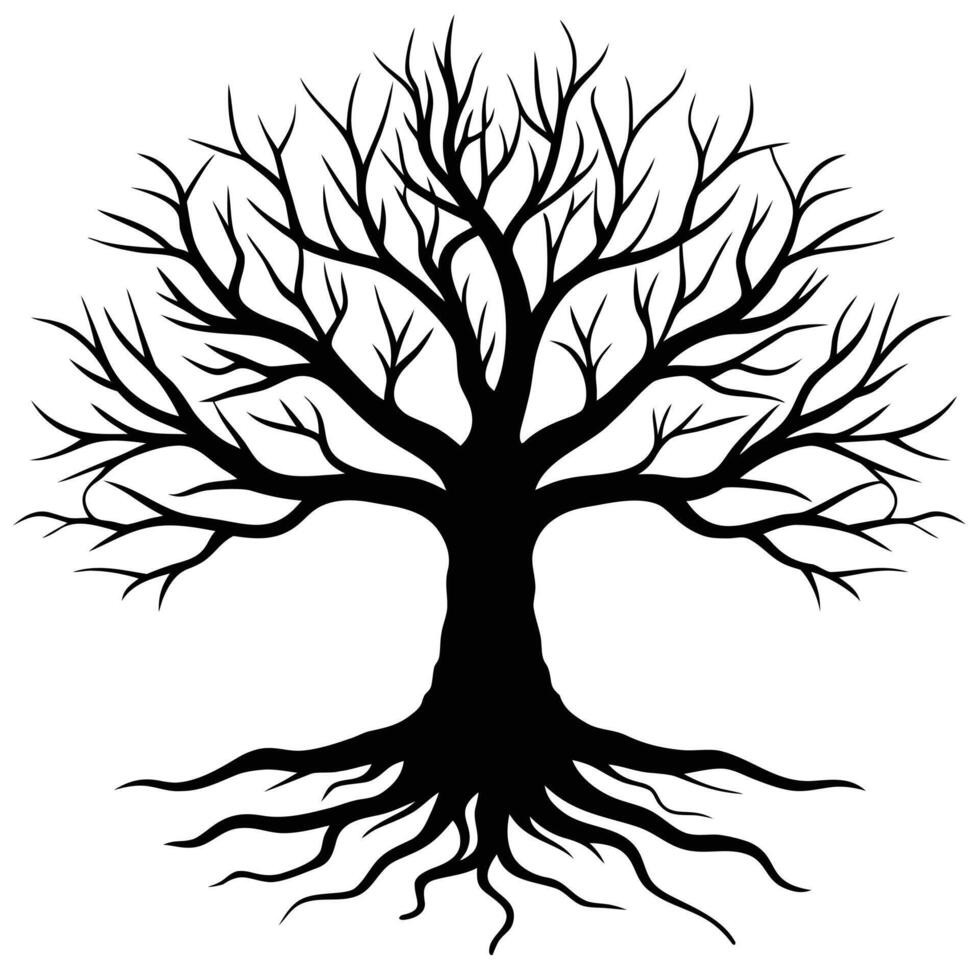 Silhouette of a bare deciduous tree with extensive root system on a white background winter Pro Vector