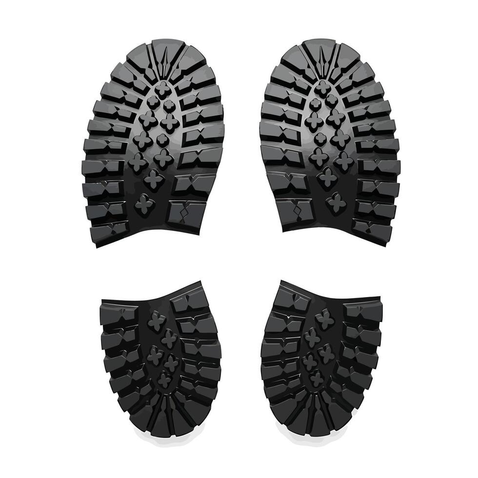 Four black boot soles with deep treads and lug patterns on a white background shoe sole footwear Pro Vector