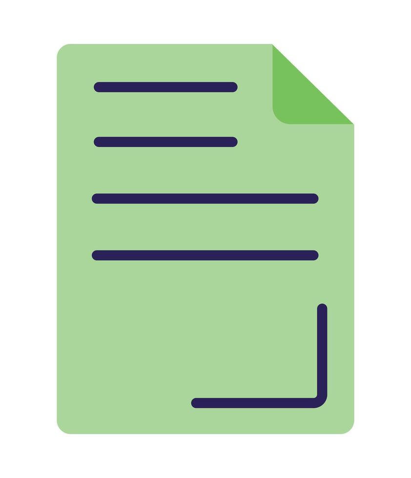 Modern flat document icon with a folded corner and text lines. A simple green paper graphic for office, business, and web concepts. Pro Vector