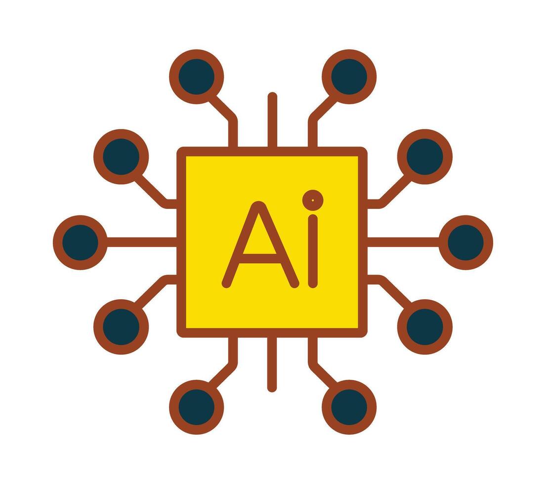 Technology symbol for AI, machine learning, and neural networks with a central chip. Pro Vector