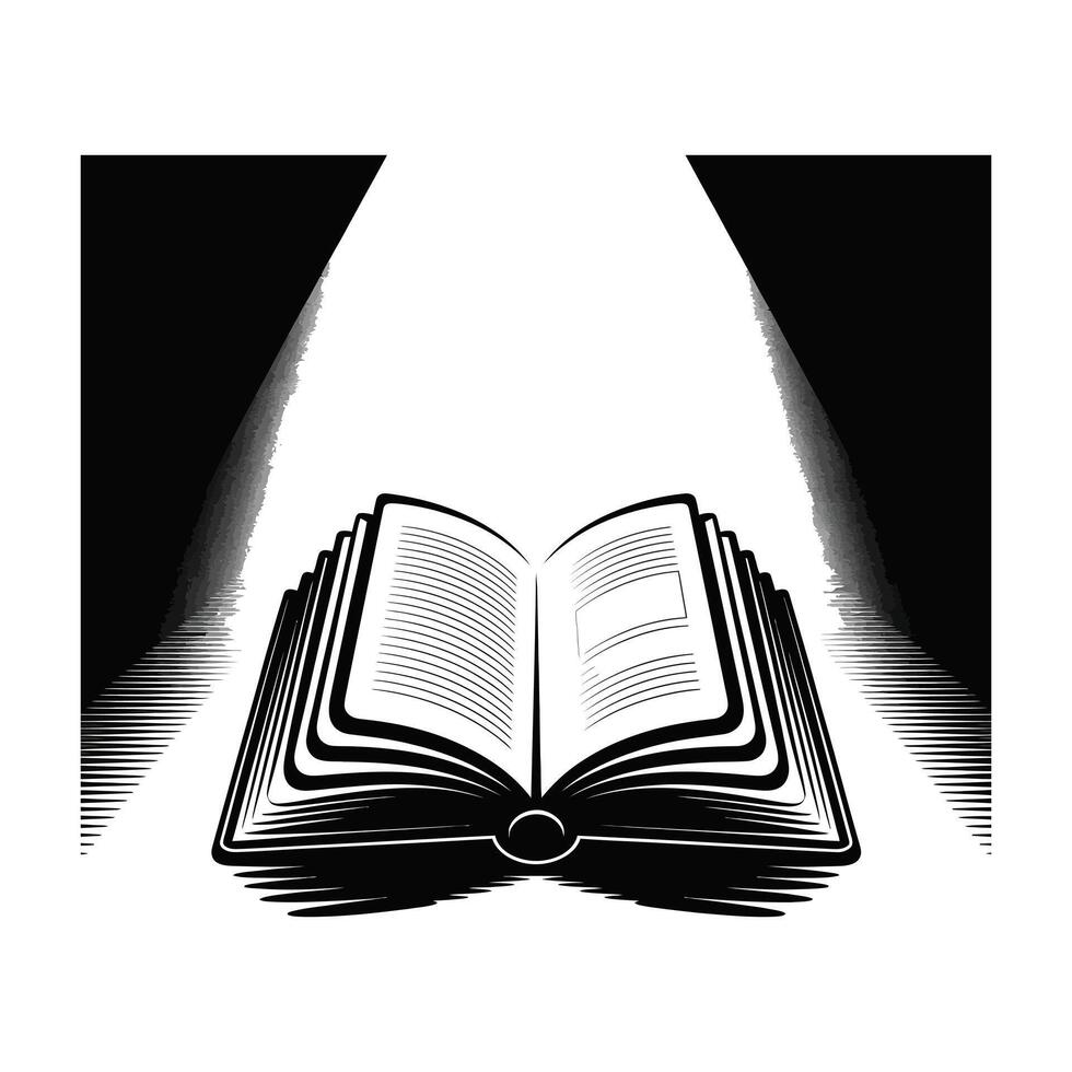Open Book Silhouette Illustration with Light Beams for Knowledge and Learning Concepts Pro Vector