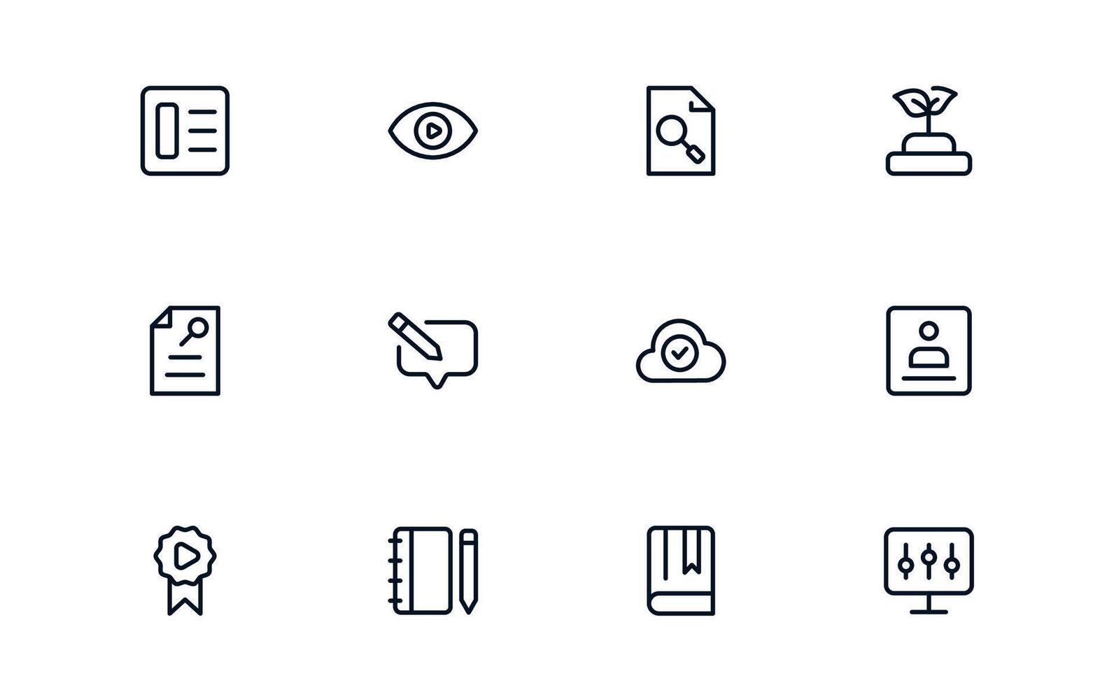Digital Content Creation Icons Collection. Minimal and outline illustrations for online publishing, production, and social media workflow in modern style. Pro Vector