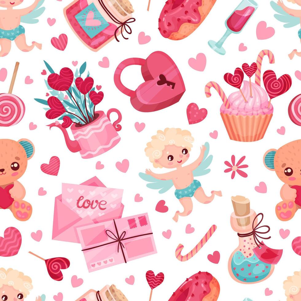 Valentines Day Seamless Pattern with Symbol and Attribute with Heart Template Pro Vector