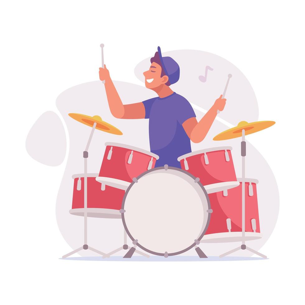 Energetic Drummer Enthusiastically Enjoying a Dynamic and Engaging Live Performance Pro Vector