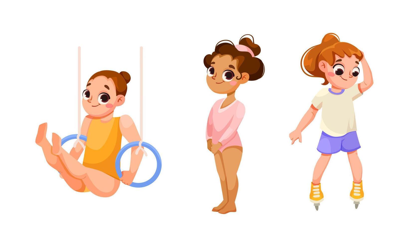 Dynamic Young Gymnasts Displaying a Vast Array of Various Poses and Moves with Energy Pro Vector