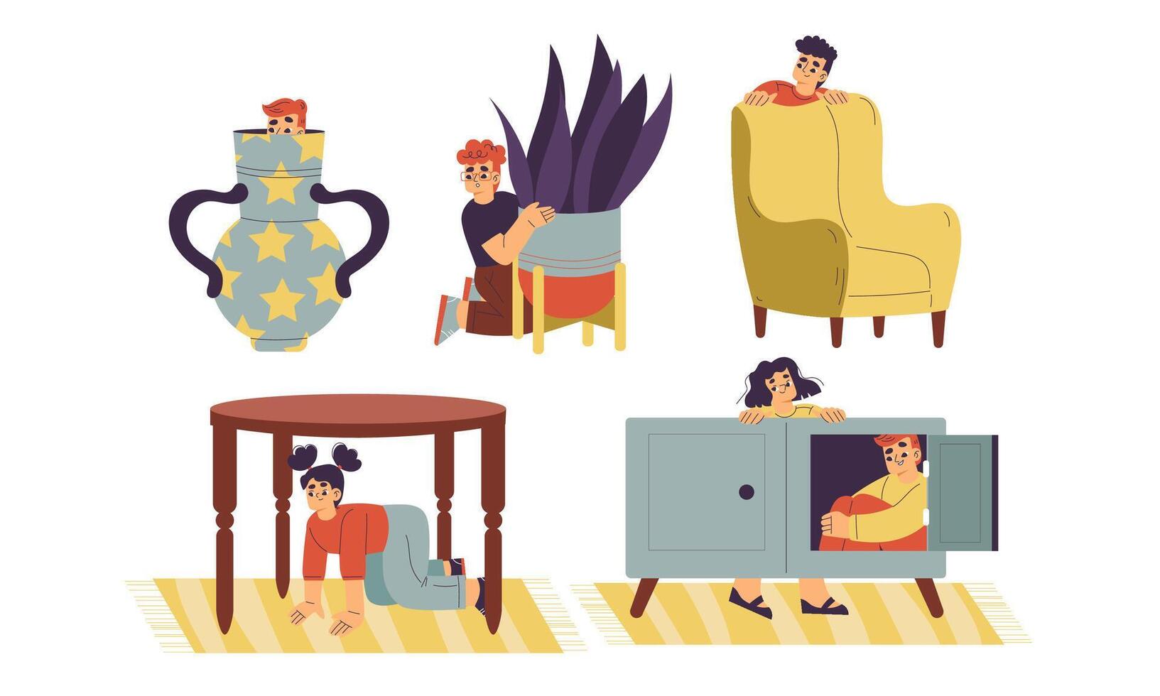 Whimsical Indoor Scenes That Feature Unique Furniture Elements and Charming Characters Pro Vector