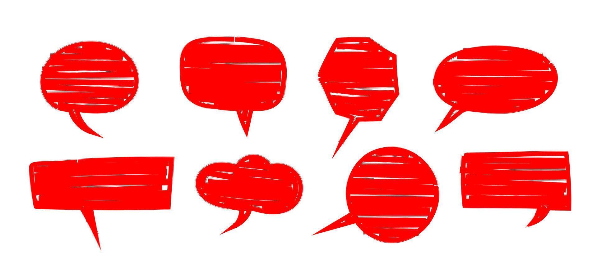 Set of Red Marker speech bubbles in Hand-drawn style , scribble brush strokes, chatting box, message box Pro Vector