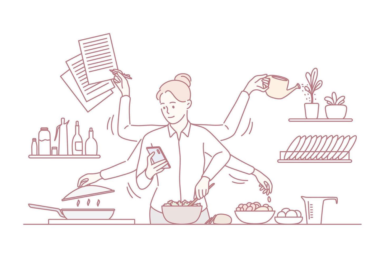 Efficient Cooking: Master Multiple Tasks in the Kitchen Pro Vector