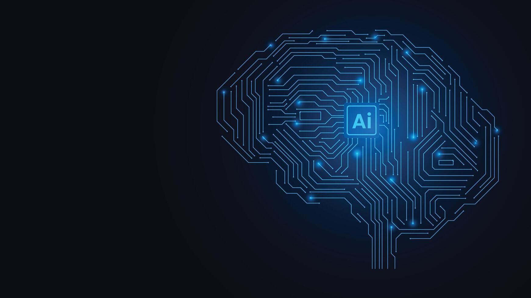 Futuristic AI brain background with glowing blue circuit lines, digital technology theme, modern artificial intelligence design for innovation and tech projects Pro Vector