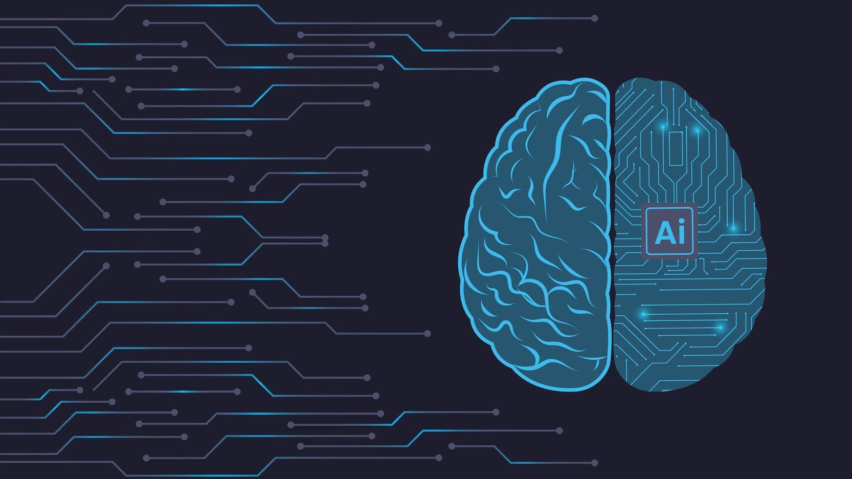 Modern AI brain background showing blue circuits and technology design, representing artificial intelligence, digital innovation, machine learning and futuristic concept Pro Vector