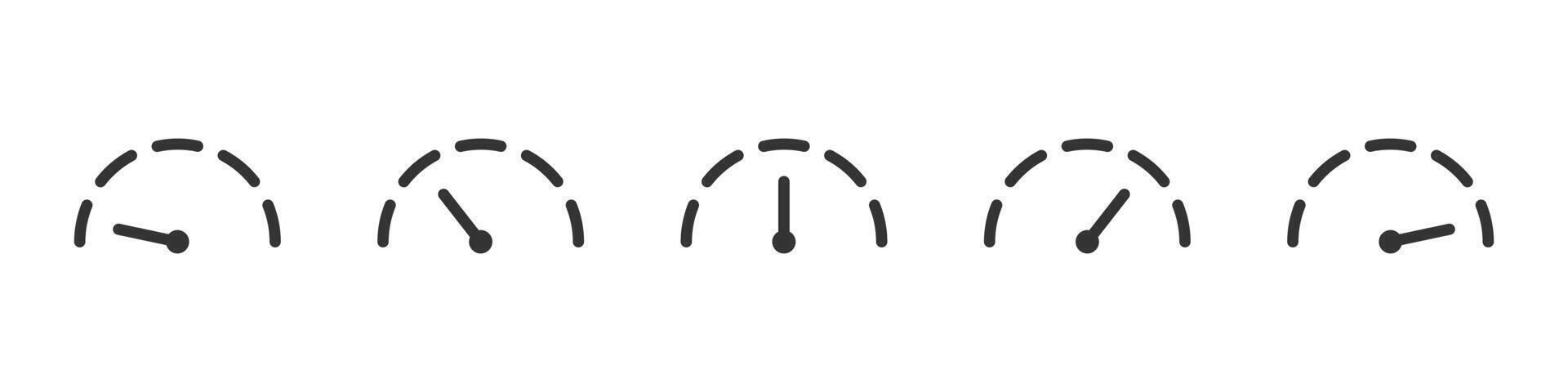 Speedometer level icon set. Dashboard gauge with needle illustration. Used for speed, progress and performance indicator symbol. Ideal for UI, apps and control panels sign. Pro Vector