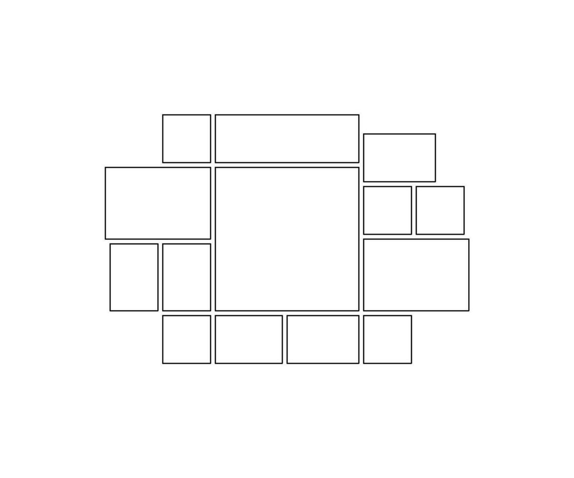Frame collage from square and rectangle shape for photo, image template line set. Mood board layout, background. Gallery grid, mosaic puzzle border. illustration Pro Vector