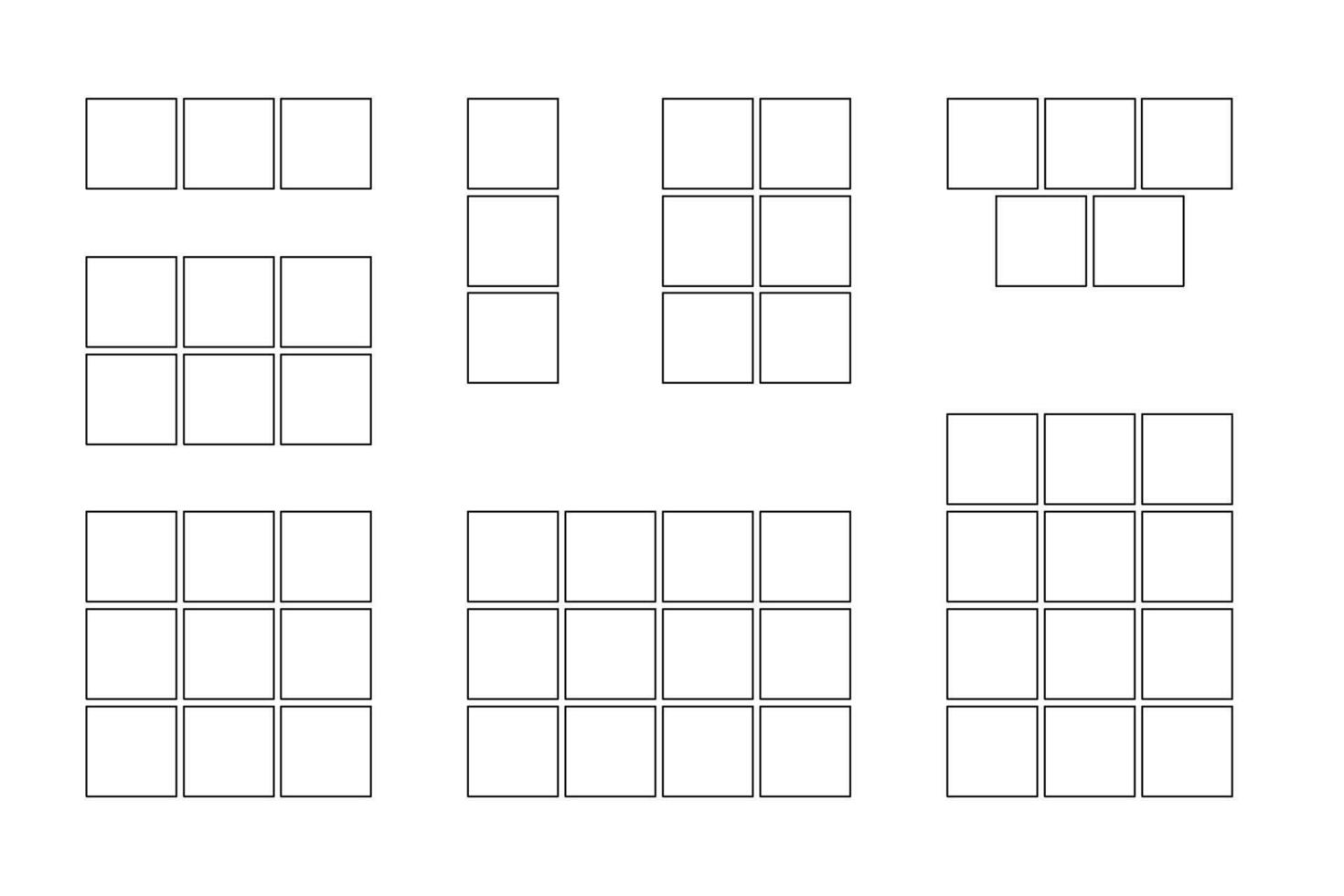 Frame collage from square shape for photo, image template line set. Mood board layout, background. Gallery grid, border outline illustration Pro Vector