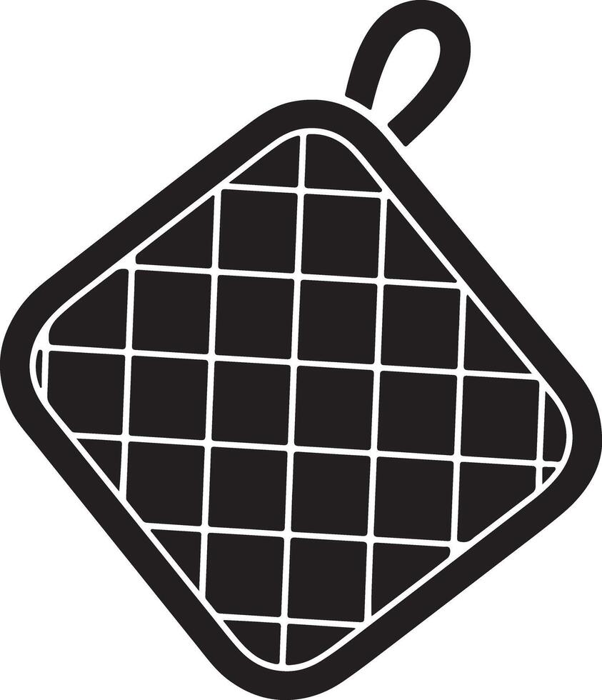 Simple black silhouette of a quilted pot holder with a hanging loop isolated on white background Pro Vector