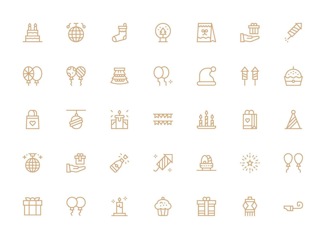 Festive featuring 35 Icons in Regular Clean Line Design Icon Set for Web Free Vector