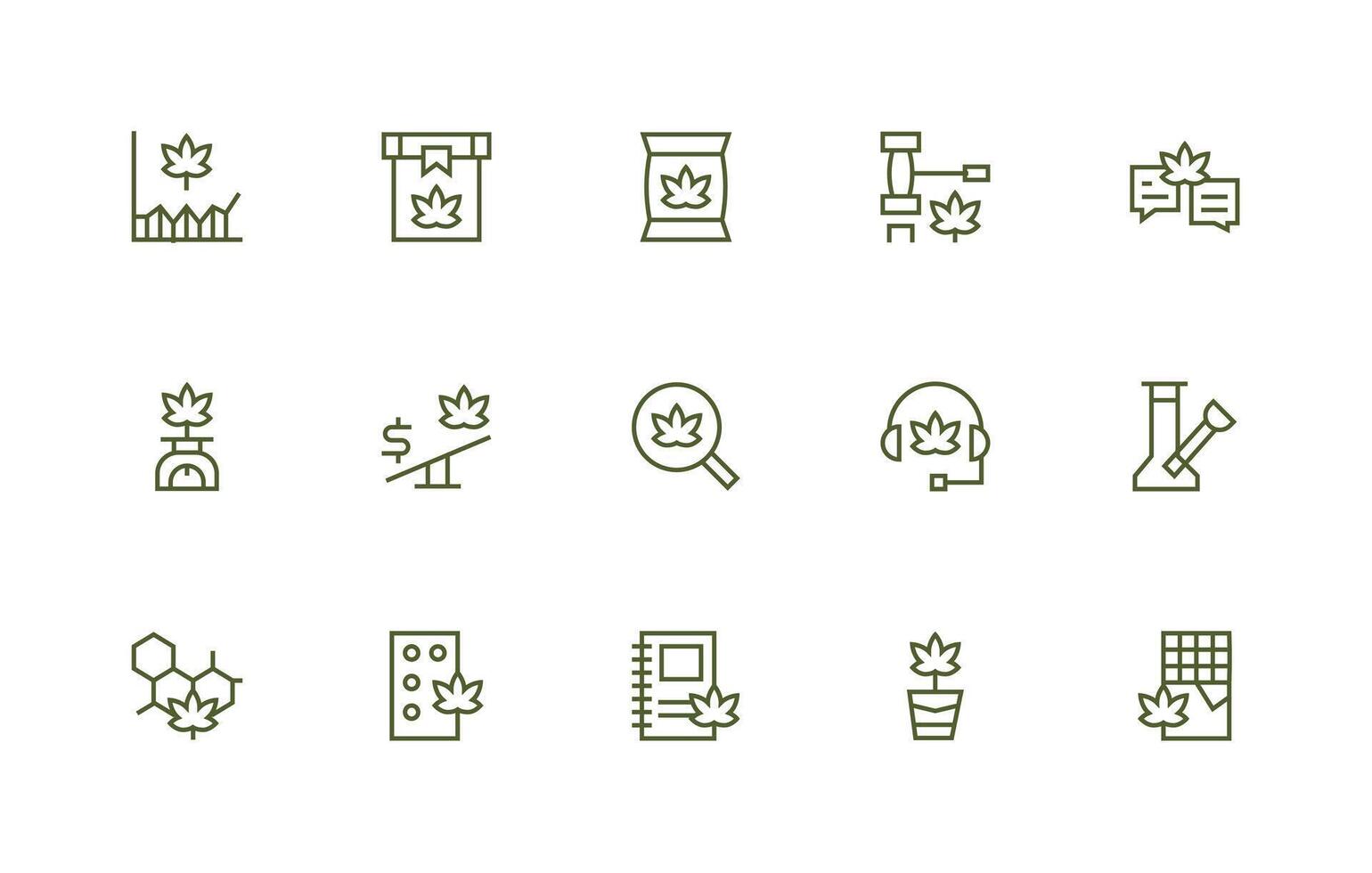 Marijuana featuring 15 Icons in Regular Line Design Essential Icon Set for Teams vector