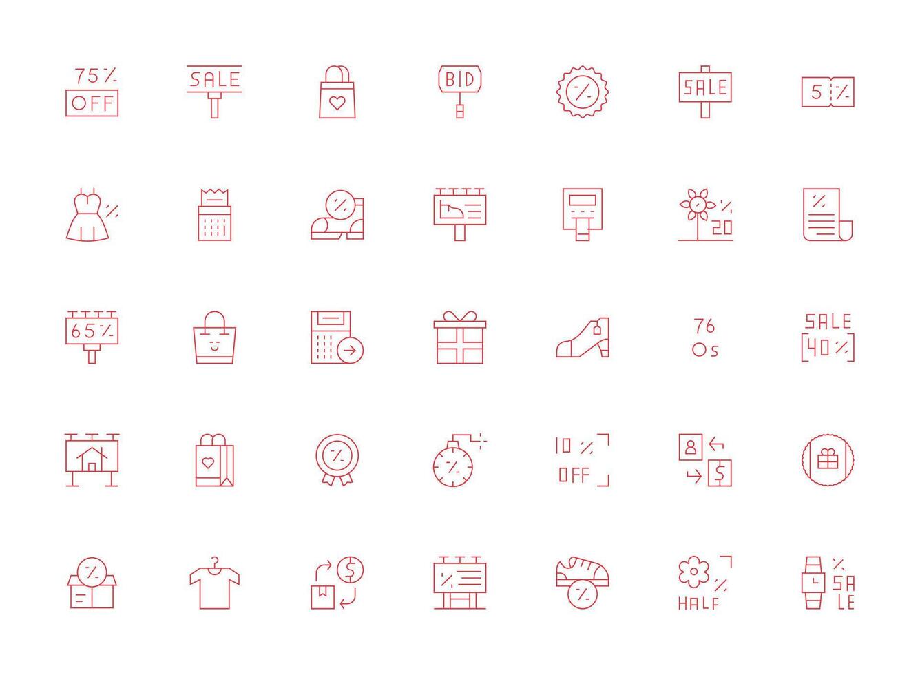 35 Light Line Style Icons from Sale Collection Minimal Icon Set for Interface Projects Free Vector