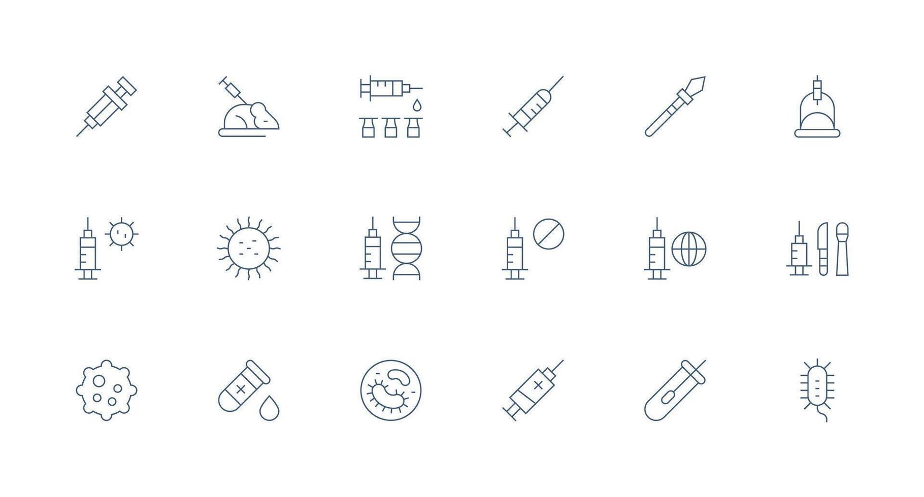 18 Minimal Line Designs for Vaccine Icons Balanced Icon Set for Functional Design vector