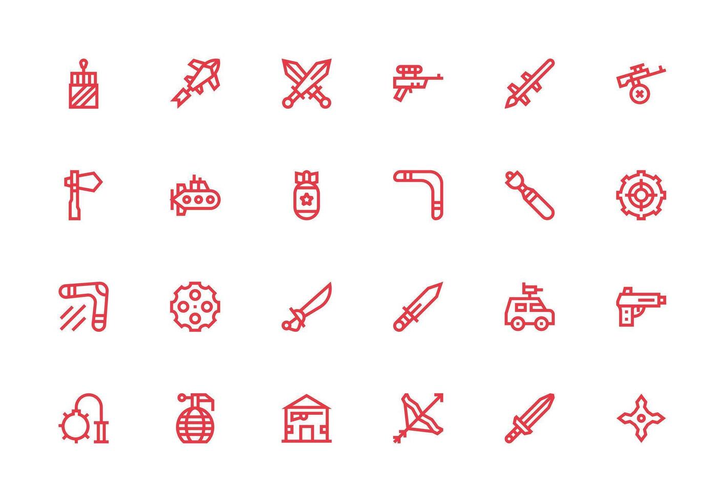 Thick Line Line Icons from Weapon Set with 24 Vectors Full Icon Library for UI Designers Free Vector