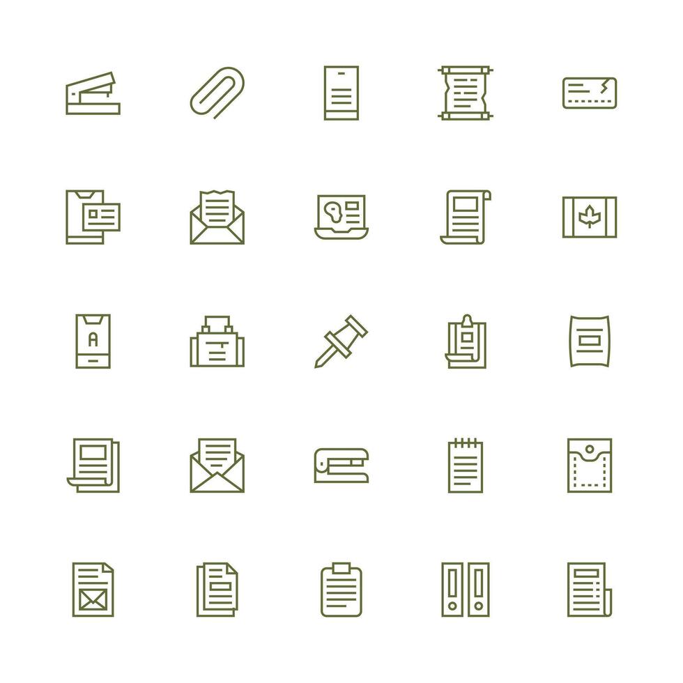 Paperclip including 25 Medium Stroke Outline Illustrations Quick Access Icons for UI Development vector