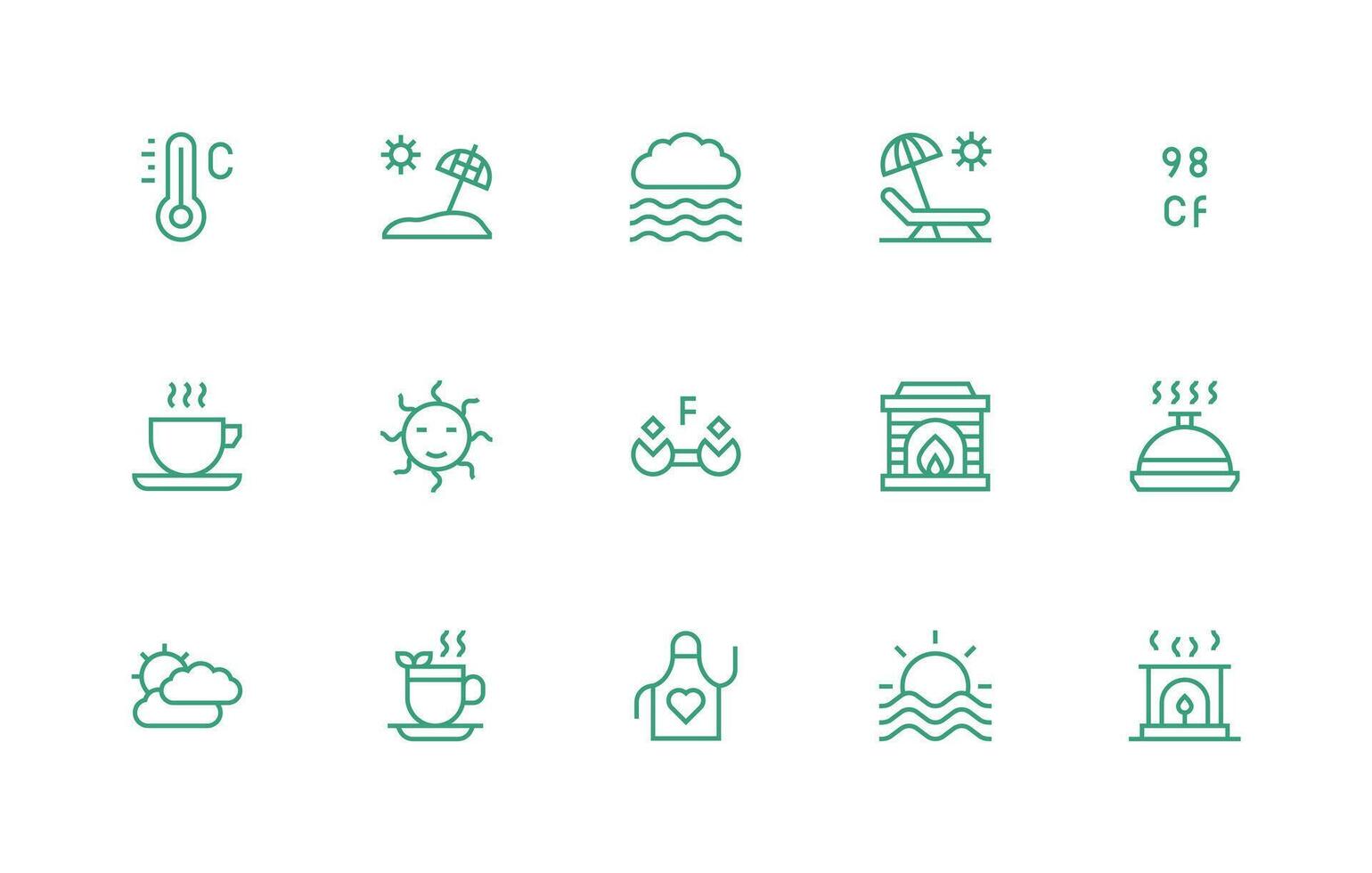 Warm Icon Set with 15 Regular Line Graphics Reliable Icons for All Interfaces vector