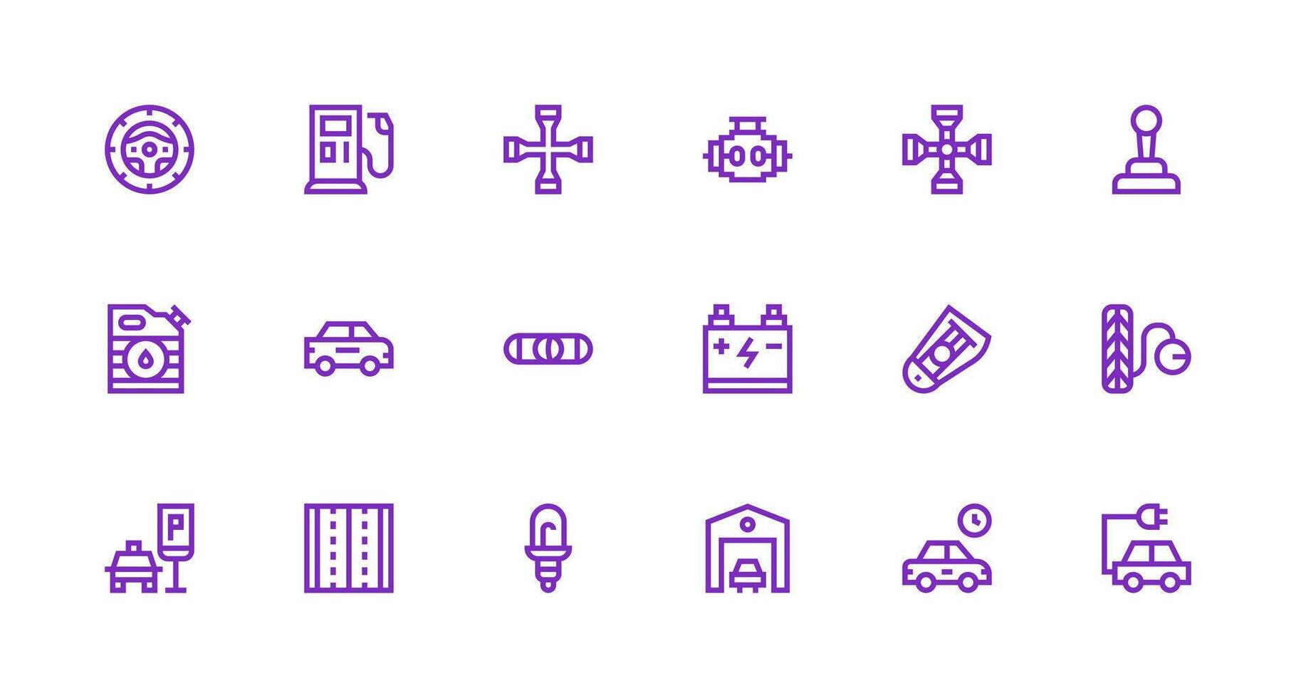 Strong Stroke Line Icons from Car Set with 18 Vectors Web and App Icon Pack Collection Free Vector