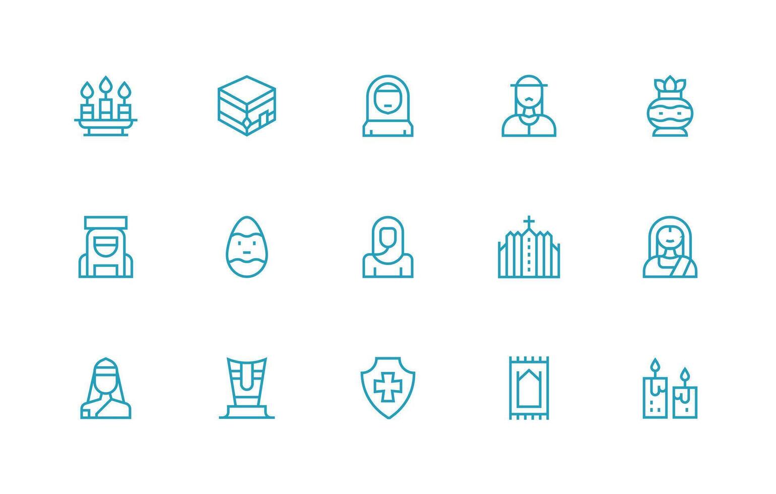 Religious Icon Set with 15 Regular Line Graphics Well-Structured Icons for Creative Use vector