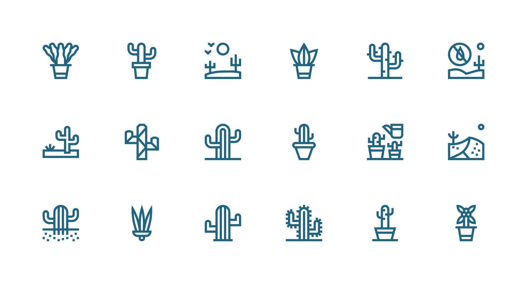 18 Strong Stroke Line Style Icons from Cactus Collection Sharp Icons for Presentations Free Vector