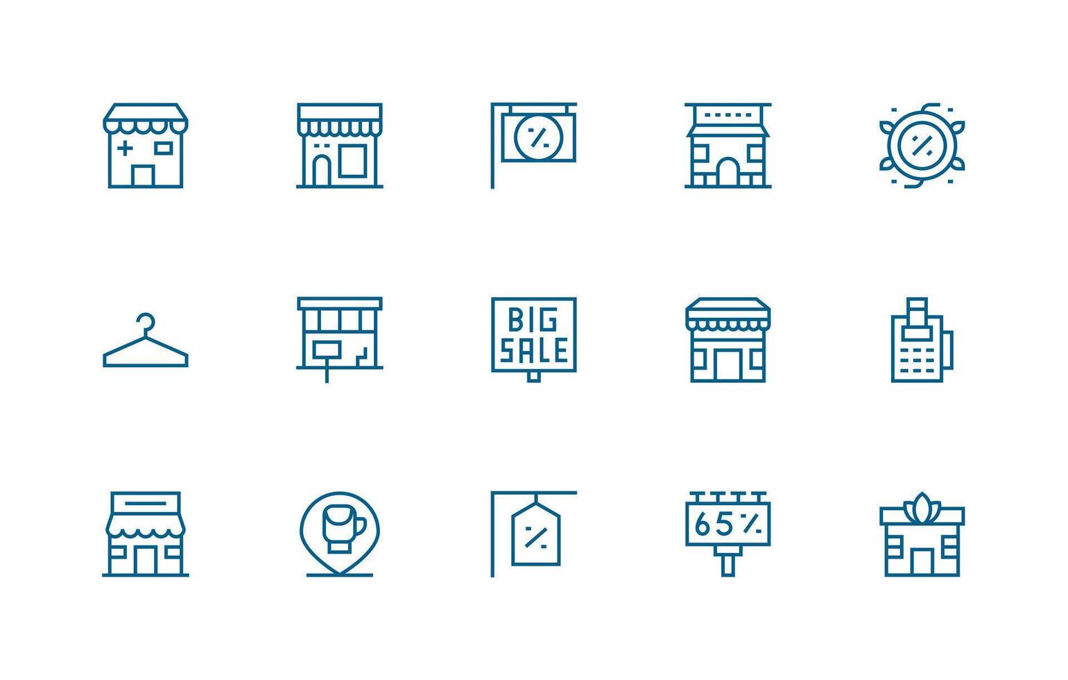 Retail Store Design Icons featuring 15 in Regular Line Style Neutral Style Icons for Any Project vector