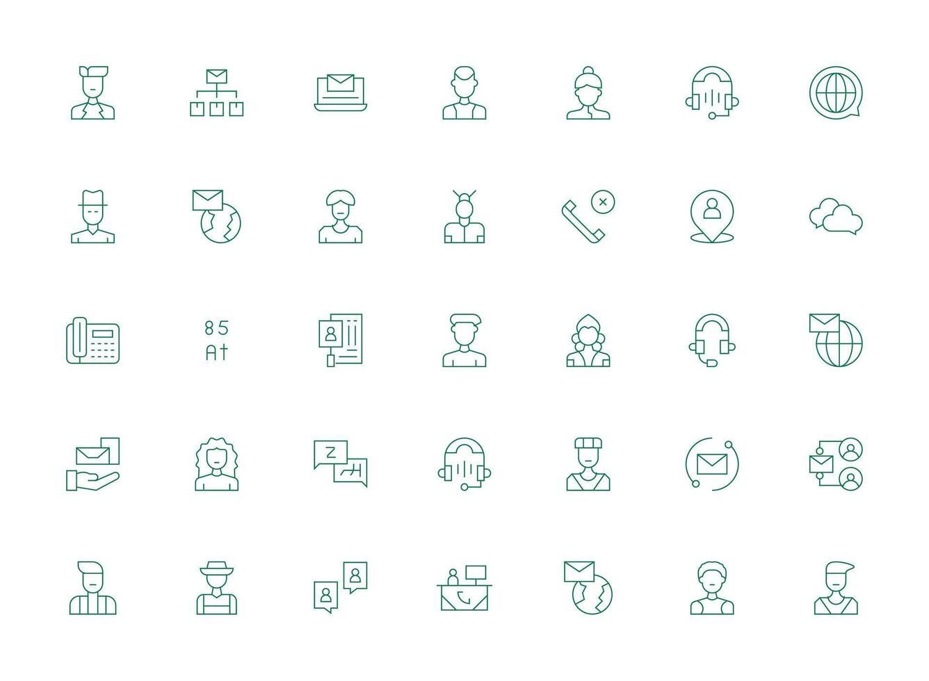 35 Light Line Style Icons from Contact Collection Complete Icon Bundle for Web Design Free Vector