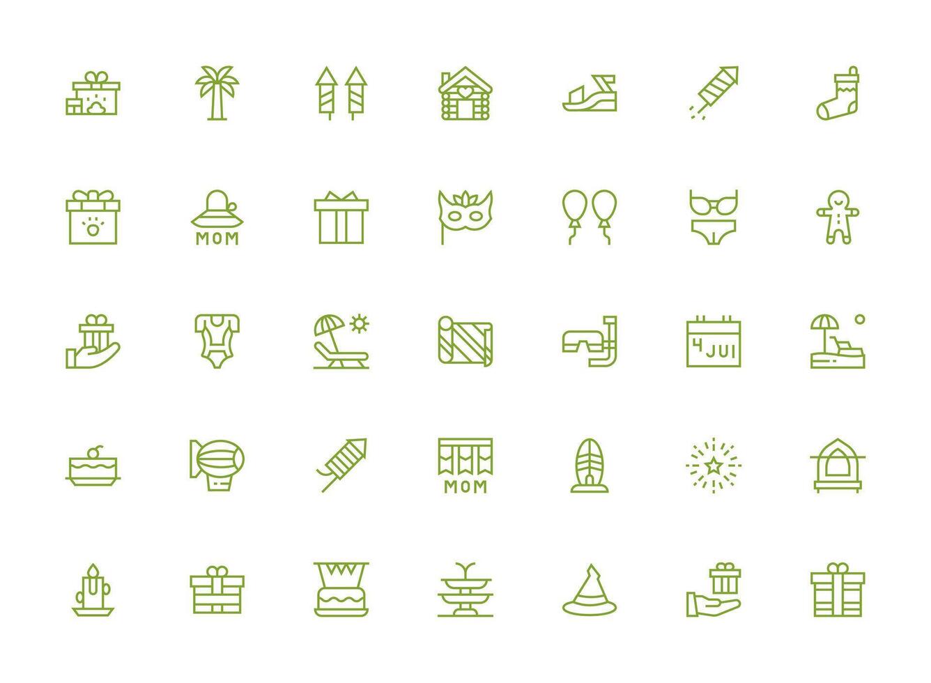 Holiday Set with 35 Regular Clean Line Icons Complete Icon Bundle for Web Design vector