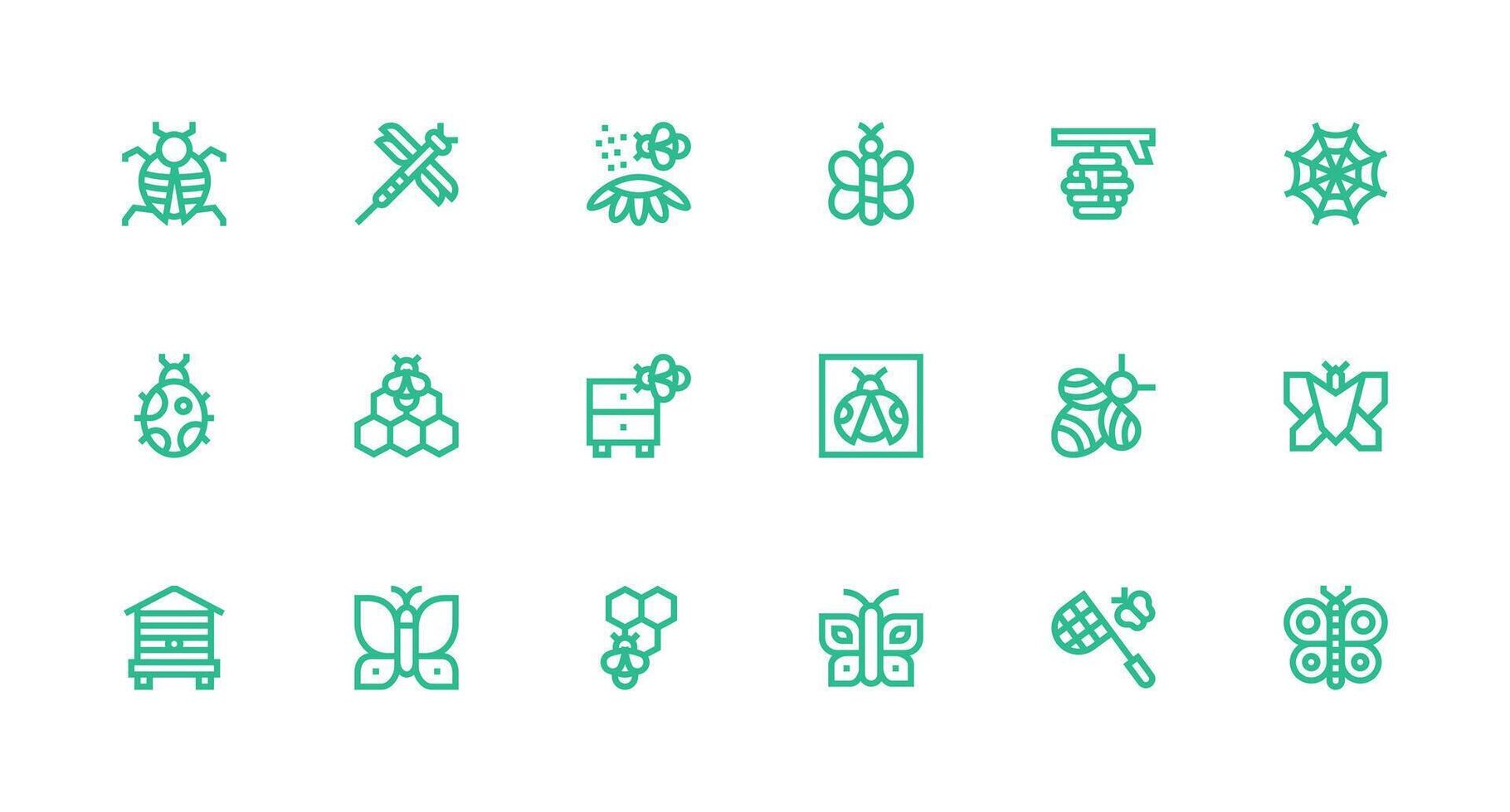 Insect Icon Set with 18 Strong Stroke Line Graphics Essential Icons for Rapid UI Building Free Vector