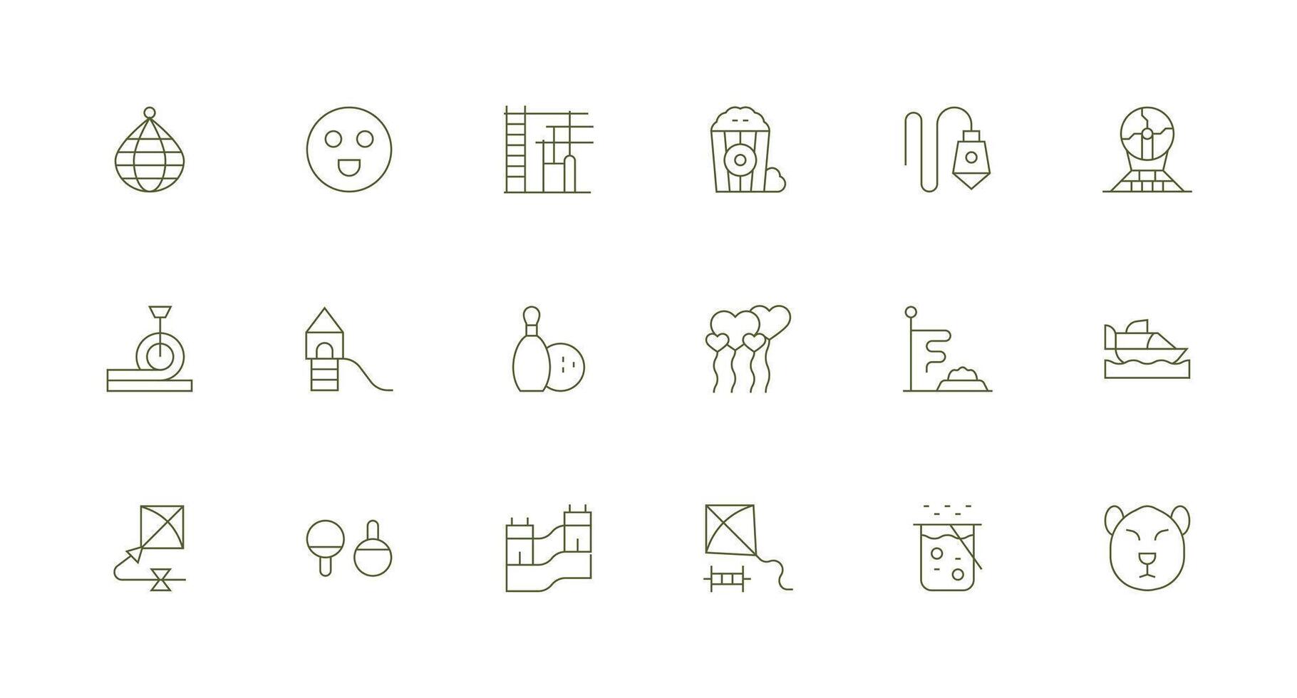 18 Minimal Line Style Icons from Fun Collection Functional Icon Series vector