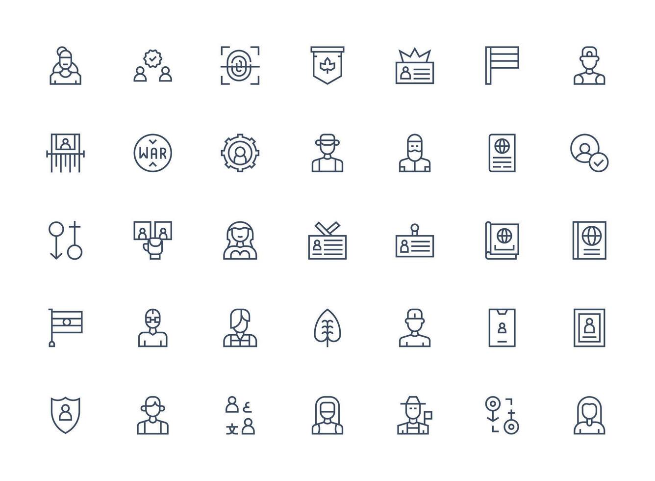 Identity Design Icons featuring 35 in Regular Clean Line Style Basic Icon Series vector