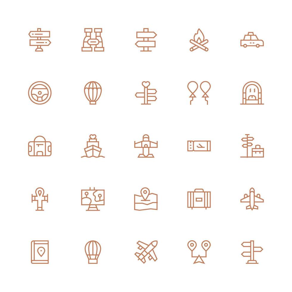 Journey featuring 25 Icons in Medium Stroke Outline Design Scalable Icons for All Themes Free Vector