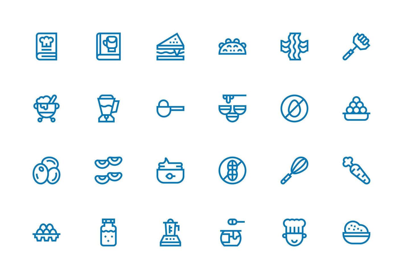 Ingredients Icon Set with 24 Thick Line Line Graphics All Device Compatible Icon Set Free Vector