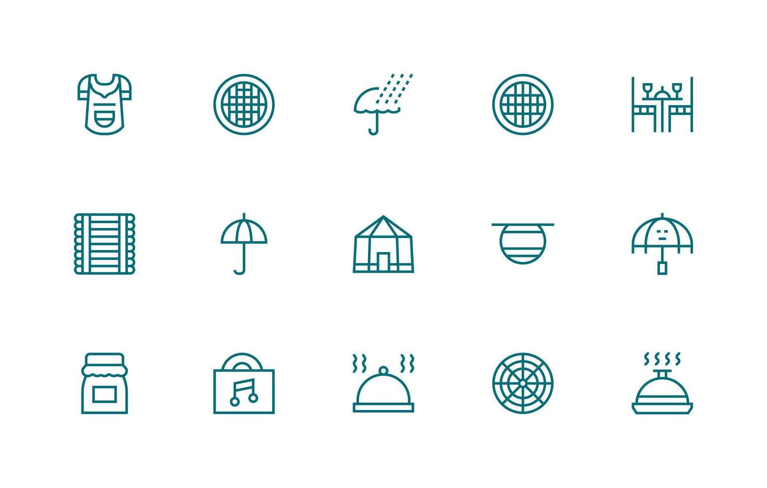 Cover Design Icons featuring 15 in Regular Line Style Neat Icon Set Free Vector