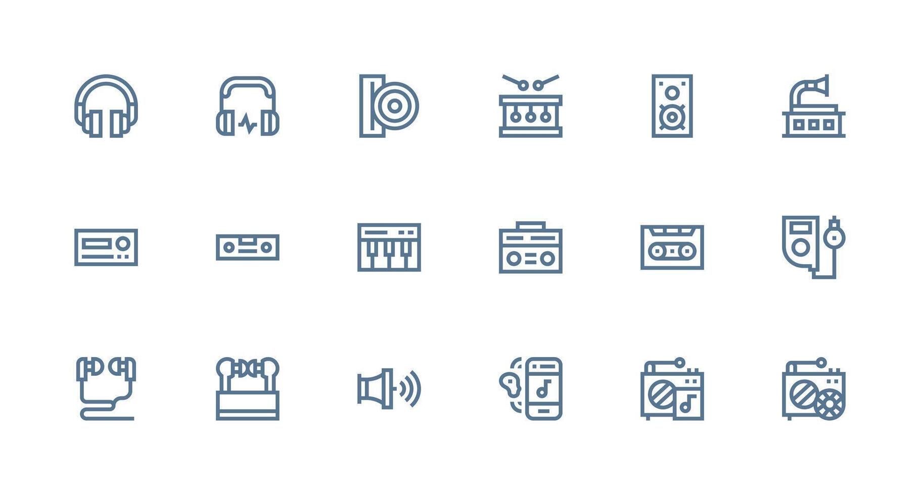 18 Strong Stroke Line Style Icons from Music Player Collection Layout Icon Collection Free Vector