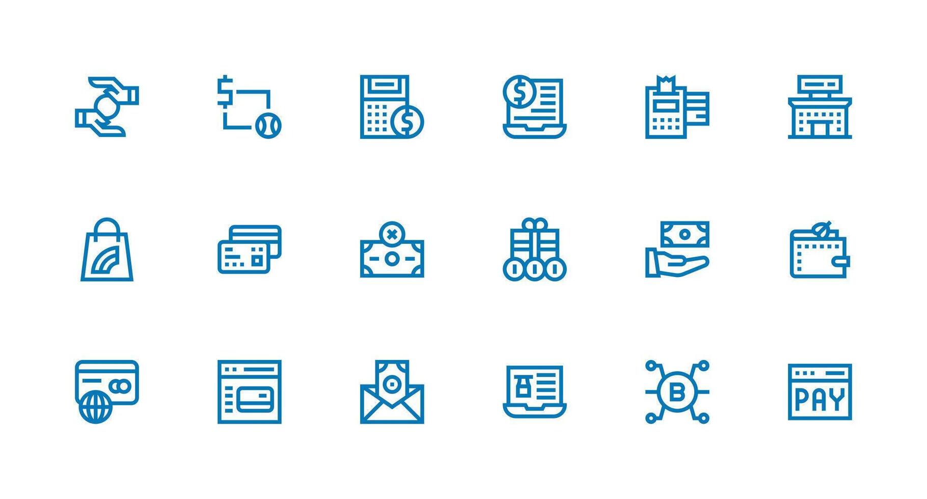 18 Strong Stroke Line Icons for Digital Payment Graphics Simple Icons for Interface and Wireframes Free Vector