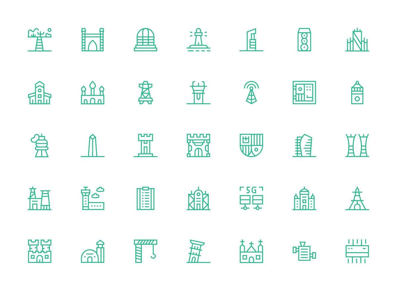 35 Icons for Tower in Regular Clean Line Format Balanced Icon Set for Functional Design Free Vector