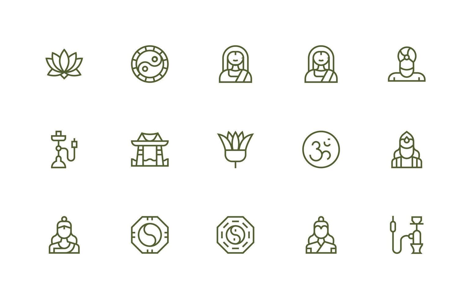 15 Regular Line Vectors for Eastern Theme Complete Icon Bundle for Web Design