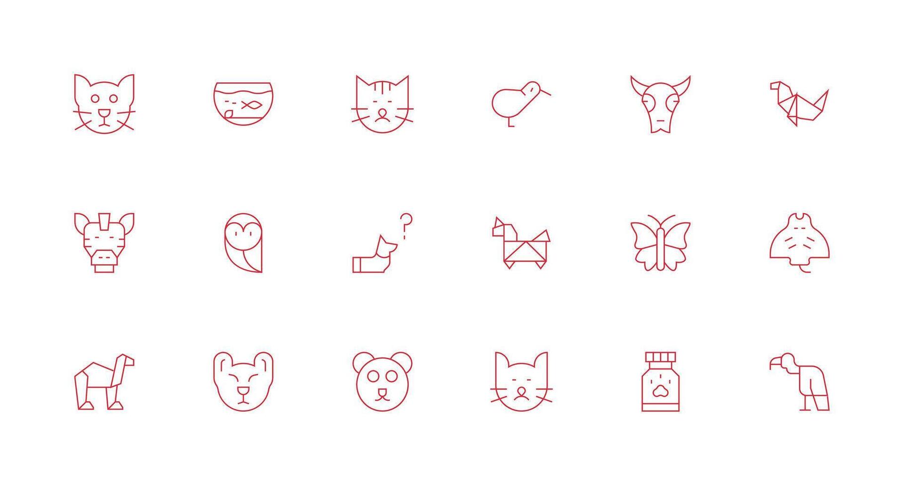 Animal Visual Pack containing 18 Minimal Line Icons Multi-Purpose Icon Set Free Vector