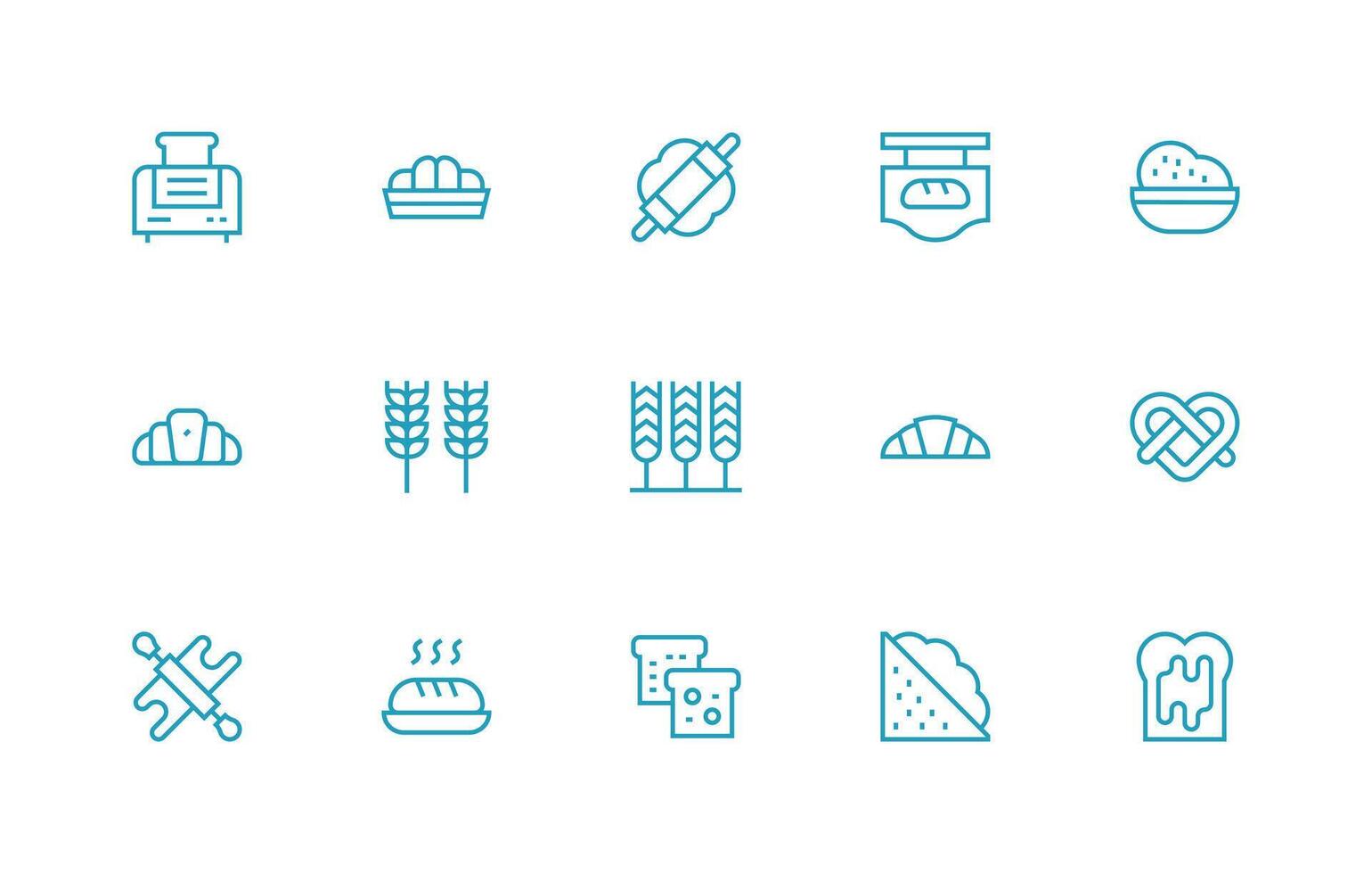 15 Regular Line Designs for Bread Icons Balanced Icon Set for Functional Design vector