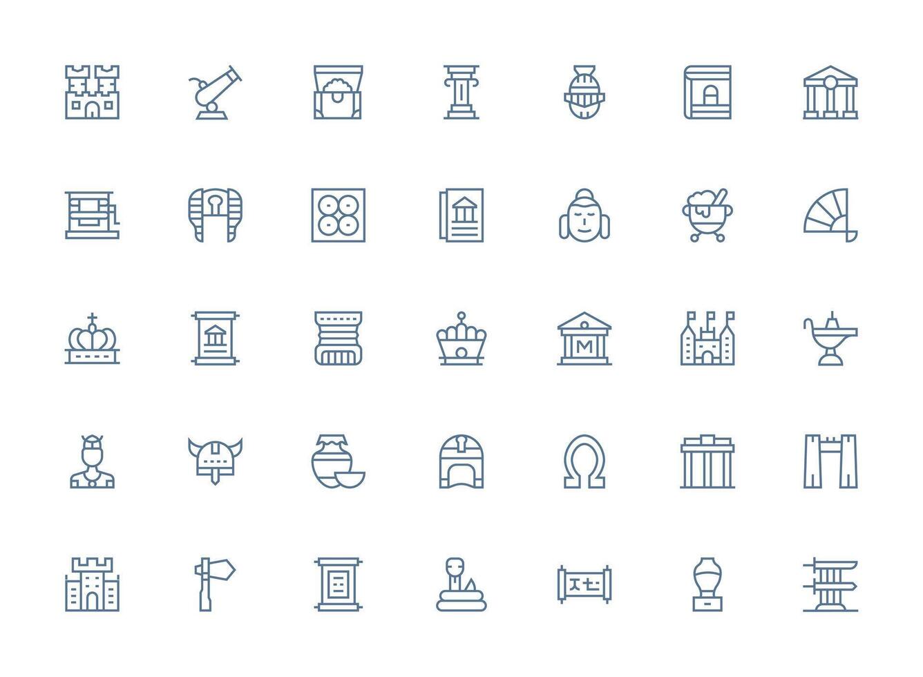 Ancient Icon Collection with 35 Regular Clean Line Designs Sharp Icons for Presentations Free Vector