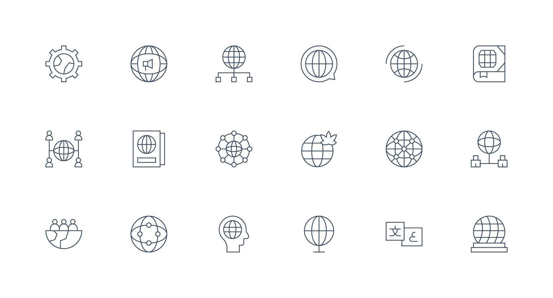 18 Minimal Line Icons for Globalization Graphics UI and UX Focused Icon Collection vector