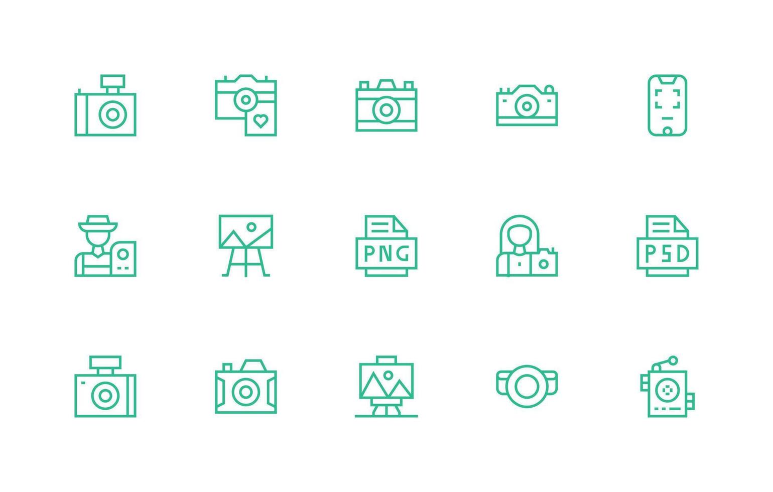 15 Regular Line Vectors for Photographic Theme Well-Structured Icons for Creative Use